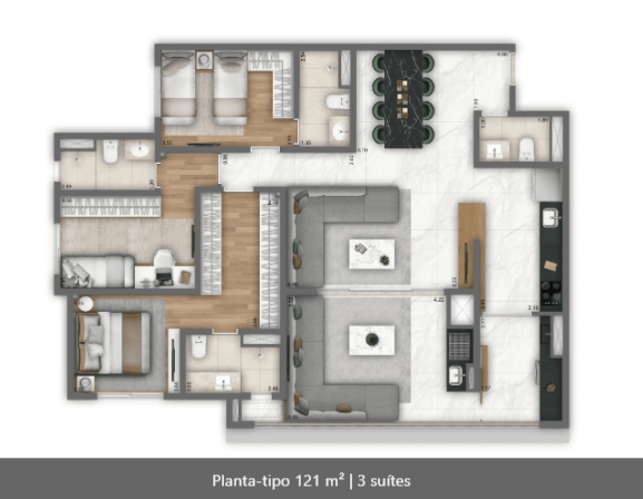 Aptos. de 71 M², 100 M², 121 M²,  ATÉ 3 SUÍTES, ATÉ 2 VAGAS