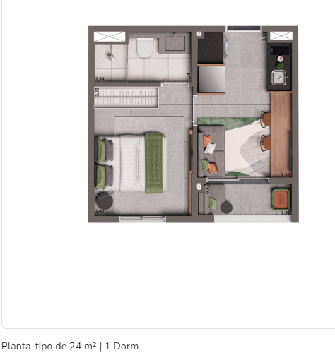 Aptos. de 46m² com 1 Dorm. Studios de 26m² Salas Comerciais de 25m² a 31m²