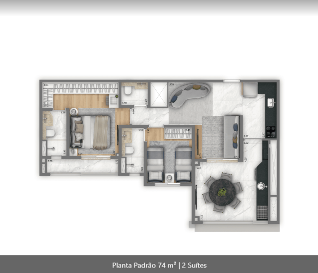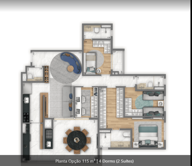 Apartamentos de 74 M² a 115 M². de 1 a 4 dormitórios, de 1 a 3, suítes, de 1 a 2 vagas.