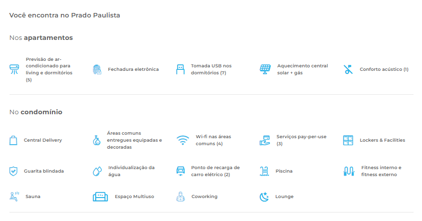 Inspirado pelo design biofílico, o Prado Paulista resgata a brasilidade e valoriza o contato com a natureza em seus espaços sofisticados. Com amplos apartamentos de 88 a 122m² com varandas generosas, o condomínio está inserido no novo polo de cultura, gastronomia e moda da cidade de São Paulo.