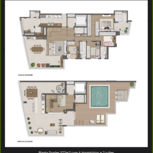 Torre única e conta com: 3 suítes de 221m², 4 suítes de 293m², Duplex com 4 suítes de 436m² e 4 suítes de 569m².