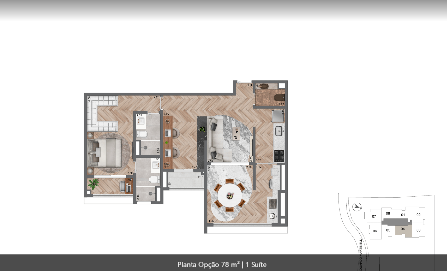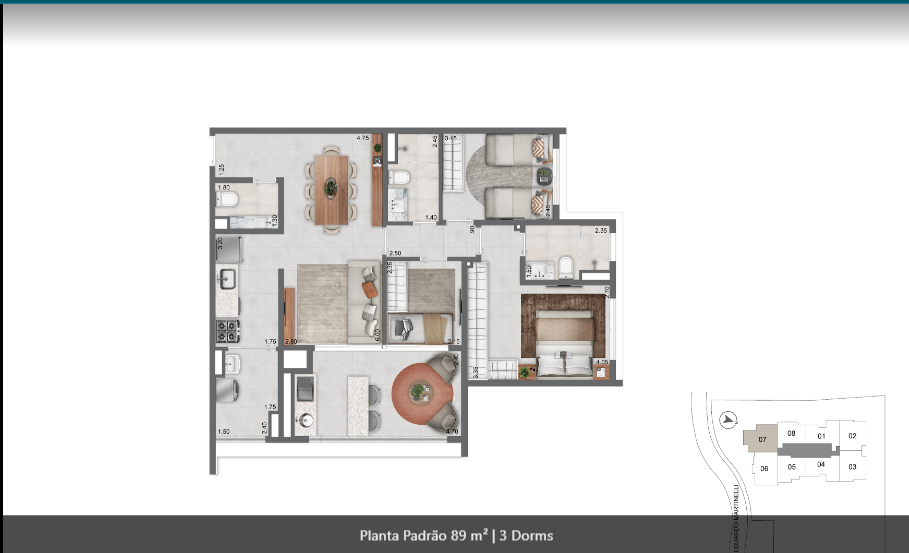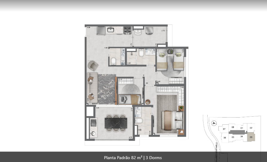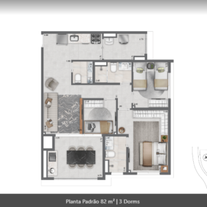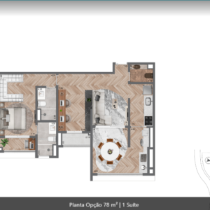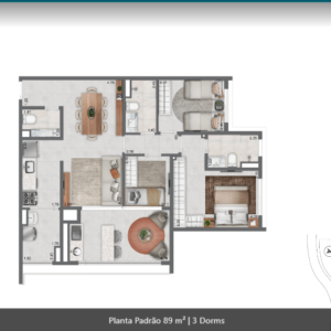 69 m² a 90 m², 1 a 2 suítes, 2 a 3 dormitórios, 1 vaga