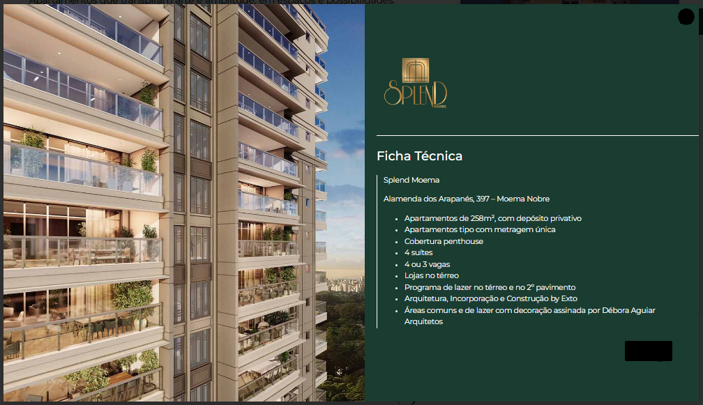 A materialização da exclusividade, em um projeto sofisticado, no melhor de Moema Nobre.Um projeto primoroso em sua arquitetura, ambientes e localização. Apartamentos que transpiram arte e amplitude, em espaços e possibilidades. Design elegante e contemporâneo, lapidado por acabamentos de alto padrão. Excelência que transforma a experiência de morar.