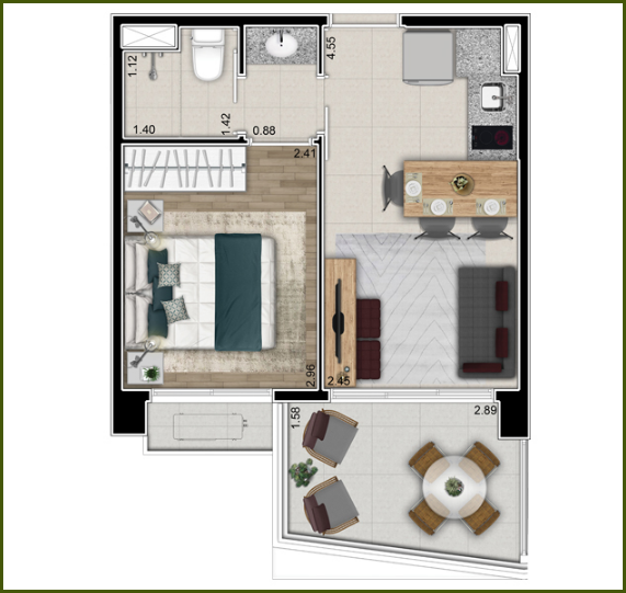 Áreas em M² 25, 31, 61, 84 com 1, 2, 3 Quartos 1, 2 Banheiros, 1 vaga, 2 vagas/ + Studio