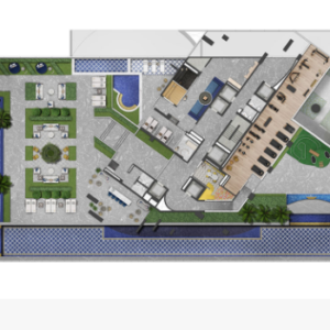 Brinquedoteca, Churrasqueira, Espaço Gourmet, Fitness Piscina Coberta, Piscina com raia, Playground, Porte-cochère, Quadra recreativa, Salão de Festas, Salão de Jogos Adulto, Salão de Jogos Teen, Spa ETC.